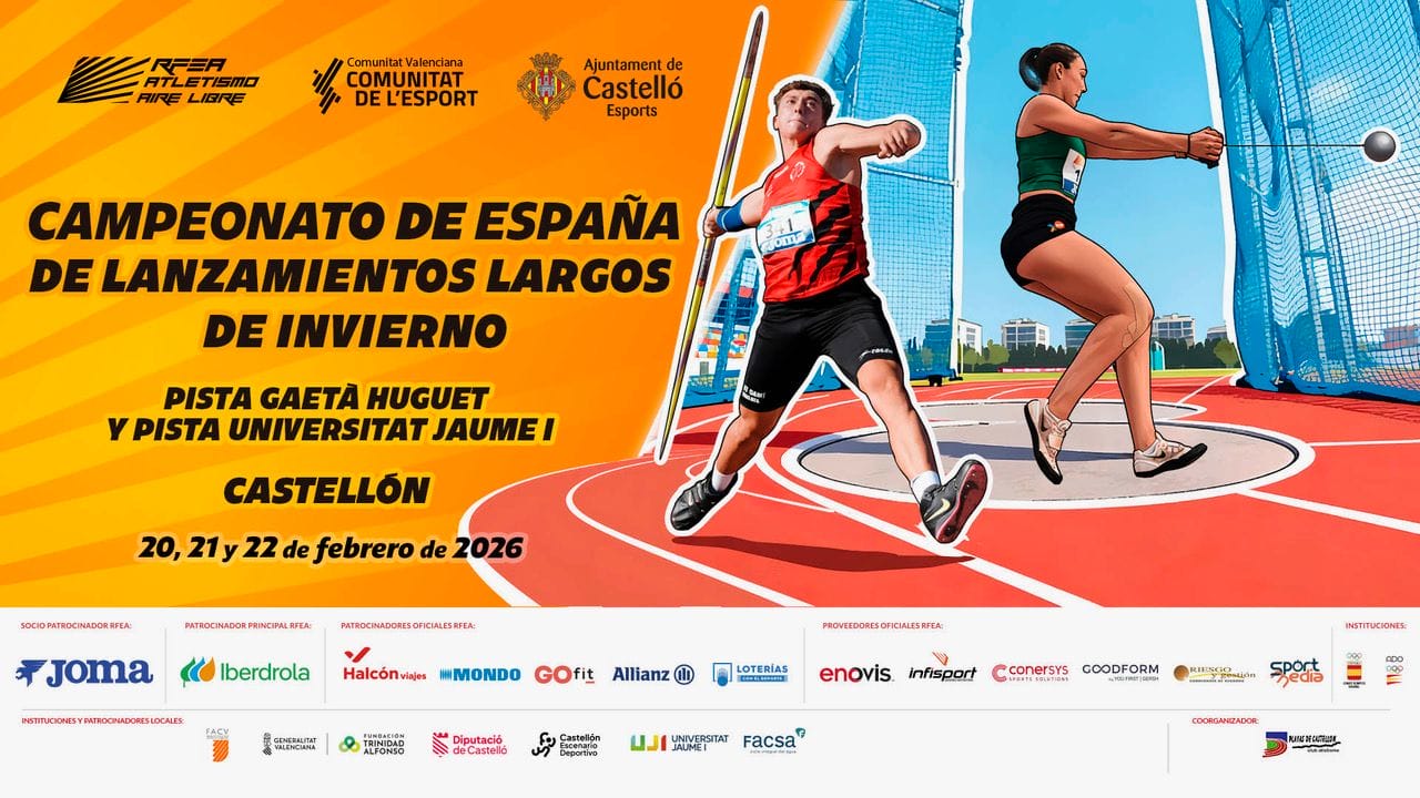 Este fin de semana del 20 a 22 de febrero de 2026 se celebra en Castelló de la Plana, el Campeonato de España de Invierno de Lanzamientos Largos, simultáneamente en las pistas de la Universitat Jaume I y la Pista Gaetà Huguet por tercer año consecutivo.