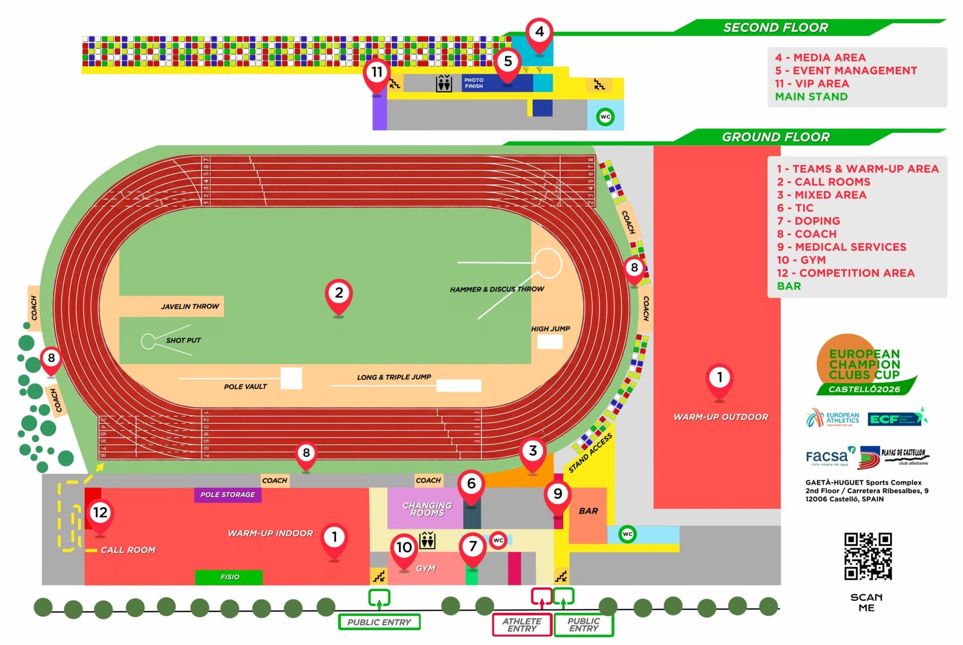 Forms for the final declaration and confirmation will be sent in advance to late arriving teams by email and distributed to each delegation during accreditation. The forms must be completed and returned immediately or no later than Friday 22 May at 16:00, at the TIC/Hotels´ Information Desks. Any club foreseeing to arrive later than this deadline shall confirm the respective team’s participation via email to joseluis.decarlos@european-athletics.org